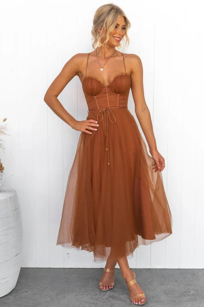 This midi dress features a gently contoured shape that flatters without clinging. Its clean, uninterrupted lines create balance between movement and structure. The mid-length design offers coverage and styling flexibility for both daytime and evening settings. A simple neckline and smooth finish maintain focus on form and flow. Ideal for formal gatherings, events, or polished everyday looks.